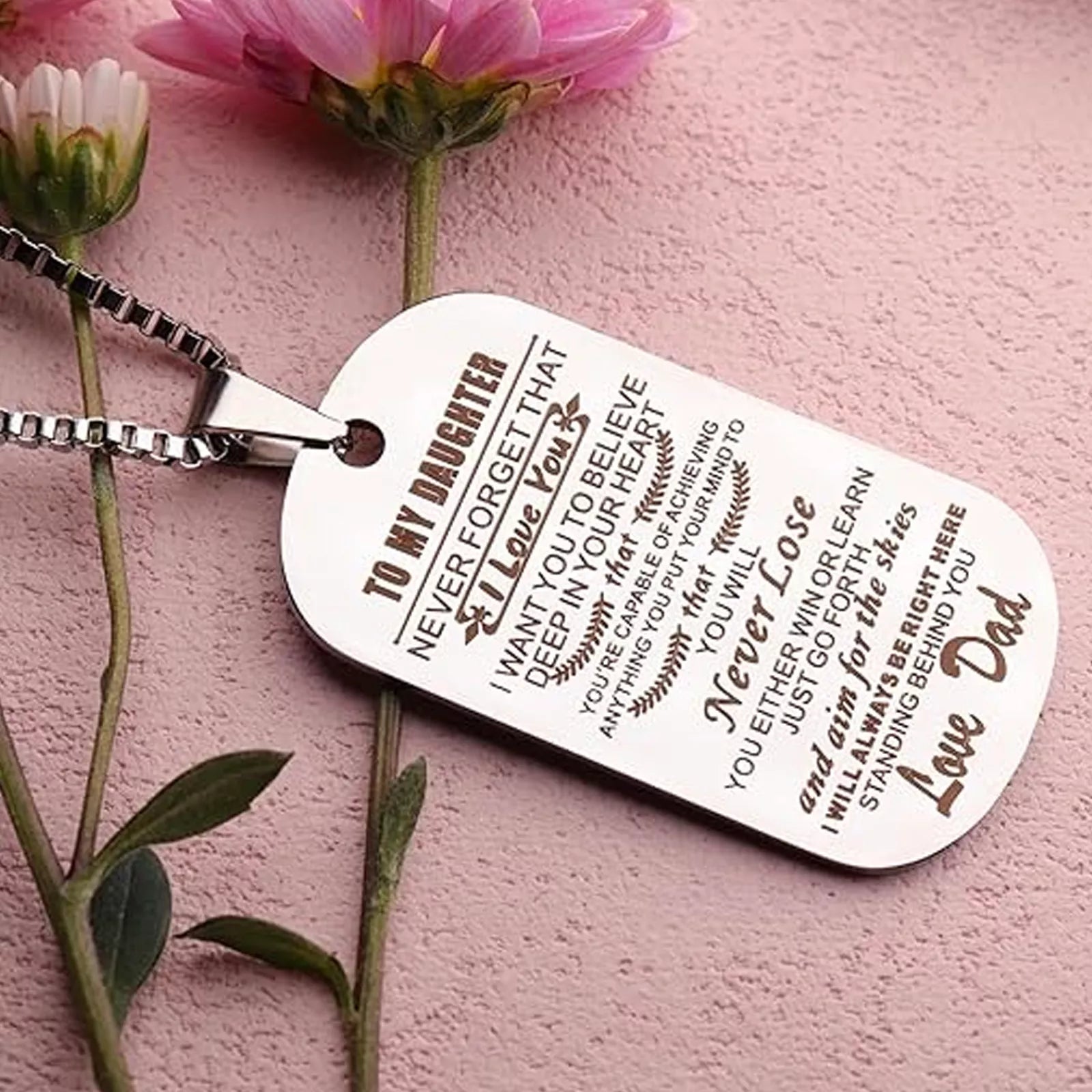 Fabriqué en acier inoxydable de haute qualité pour une durabilité et une finition solide, parfait pour la gravure. Pendentif militaire simple et élégant, intemporel, adapté au port quotidien. Idéal pour la gravure, vous pouvez y graver n’importe quel motif ou texte que vous souhaitez afficher sur la surface.