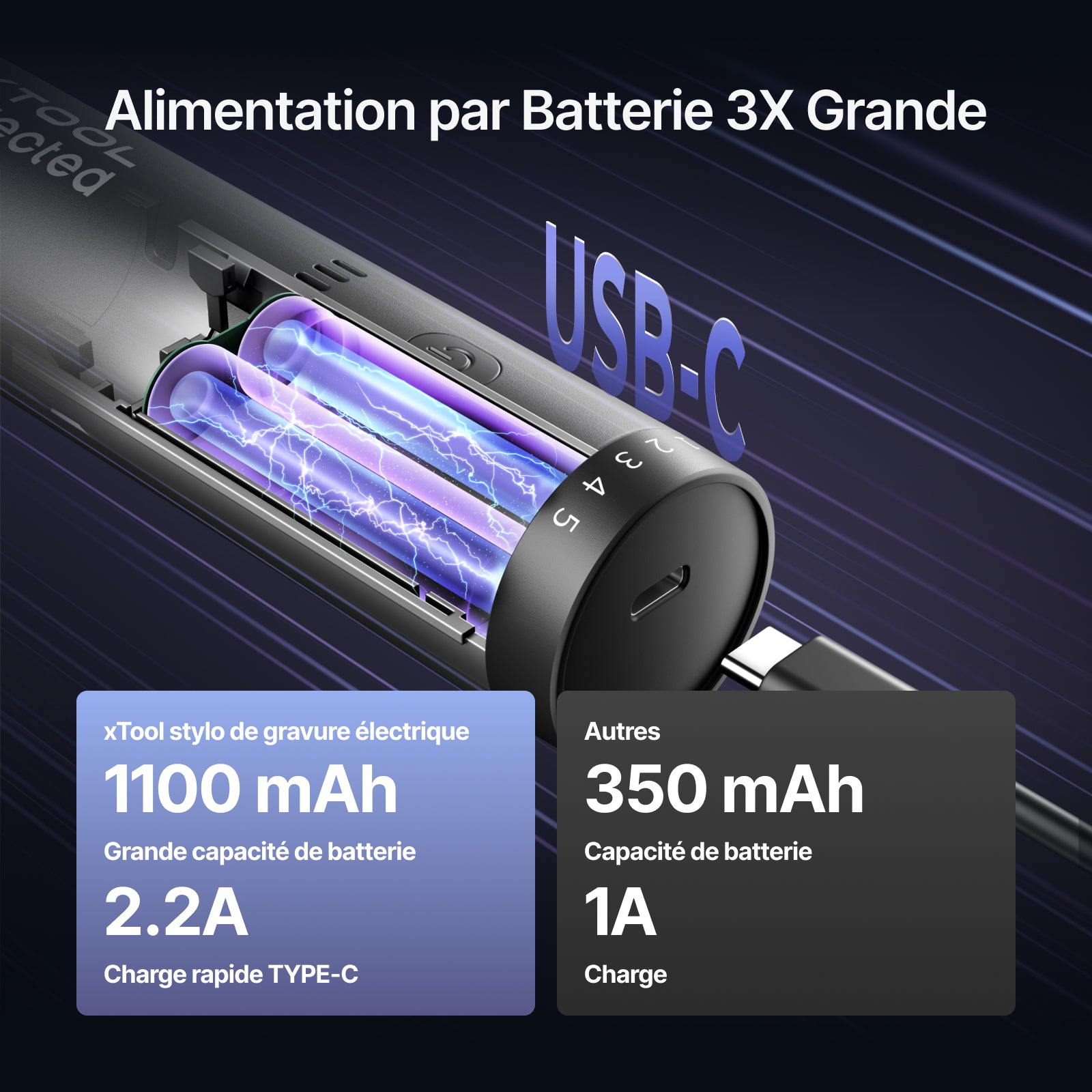 Autonomie longue durée : Alimenté par des batteries lithium haute capacité. Recharge rapide de la batterie de 1100 mAh en seulement 70 minutes, offrant une puissance durable pour vos tâches de polissage. Conçu avec une interface Type-C, le chargement est pratique et rapide.