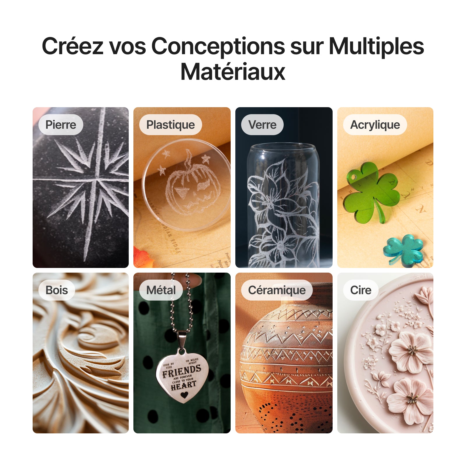 Les matériaux xTool Selected sont des partenaires idéaux pour les machines laser xTool. Il est recommandé d’ouvrir l’emballage dans la semaine suivant la réception du produit. Si vous constatez un problème de qualité avec les matériaux, veuillez nous contacter. xTool Selected vous offre un service de retour et d’échange inconditionnel sous 30 jours.