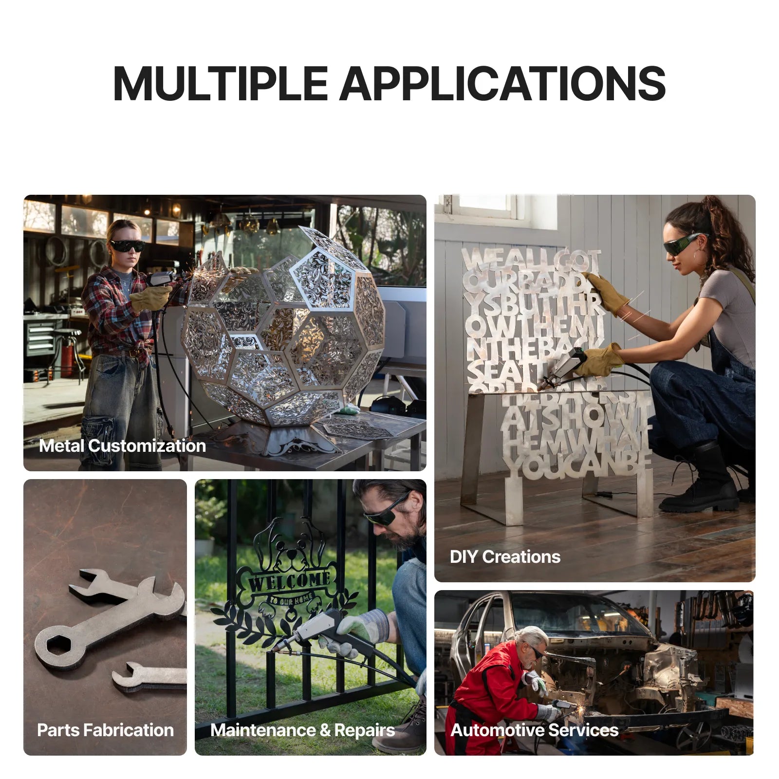 Parfaitement adaptées au xTool MetalFab Laser Welder and CNC Cutter. Elles conviennent à de nombreux usages : personnalisation métallique, fabrication de pièces, maintenance et réparation, projets créatifs DIY, service automobile, décoration architecturale, aérospatiale, équipements marins et bien d’autres applications.