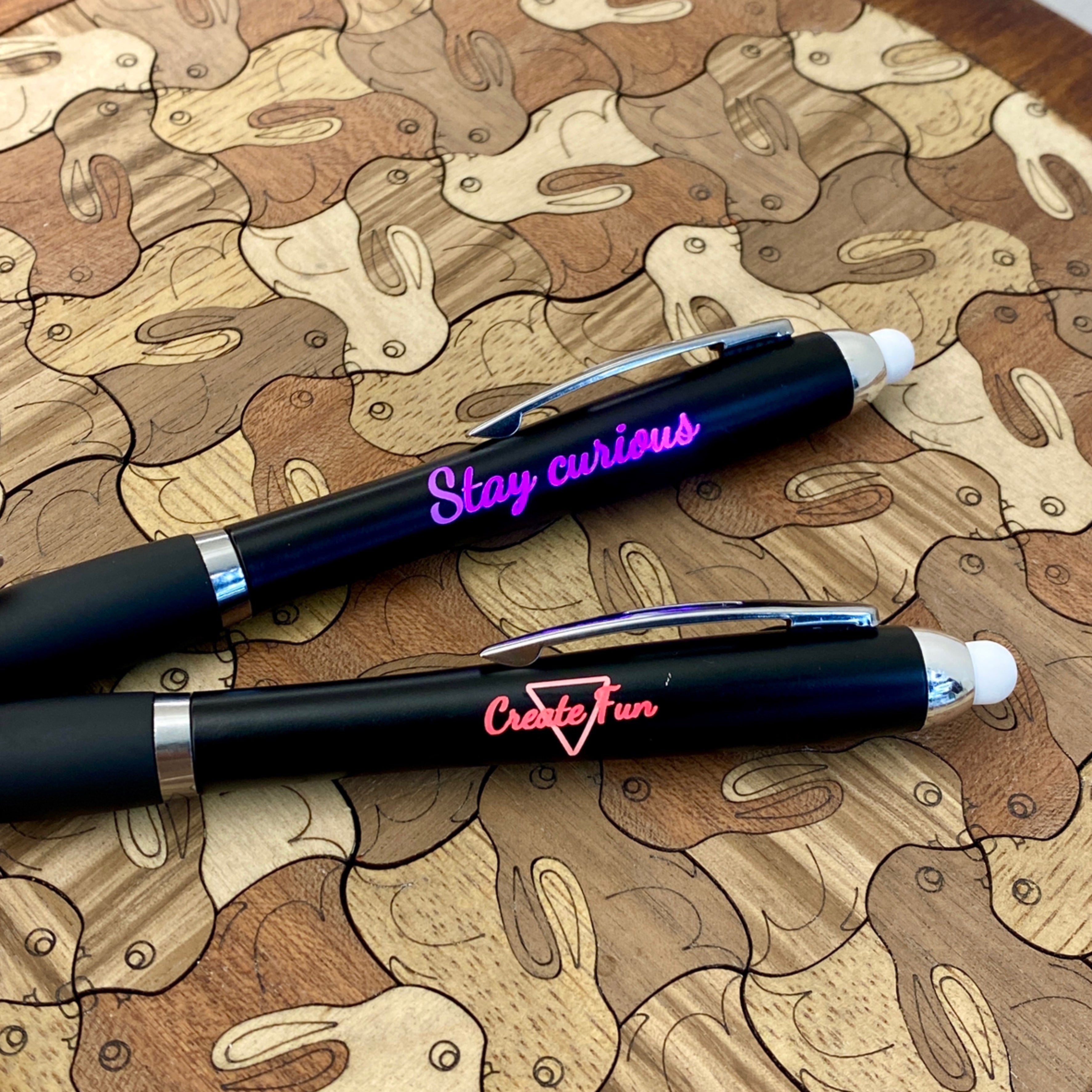 - Le stylo à bille avec stylet intègre une lumière LED multicolore parfaitement adaptée à la machine xTool pour la gravure laser. Il suffit de graver des motifs ou du texte sur le corps du stylo pour obtenir un motif lumineux original. Un bouton situé à l’extrémité du stylo contrôle la lumière. Pour des performances optimales et une longue durée de vie, nous recommandons d’éteindre la lumière lorsque le stylo n’est pas utilisé.