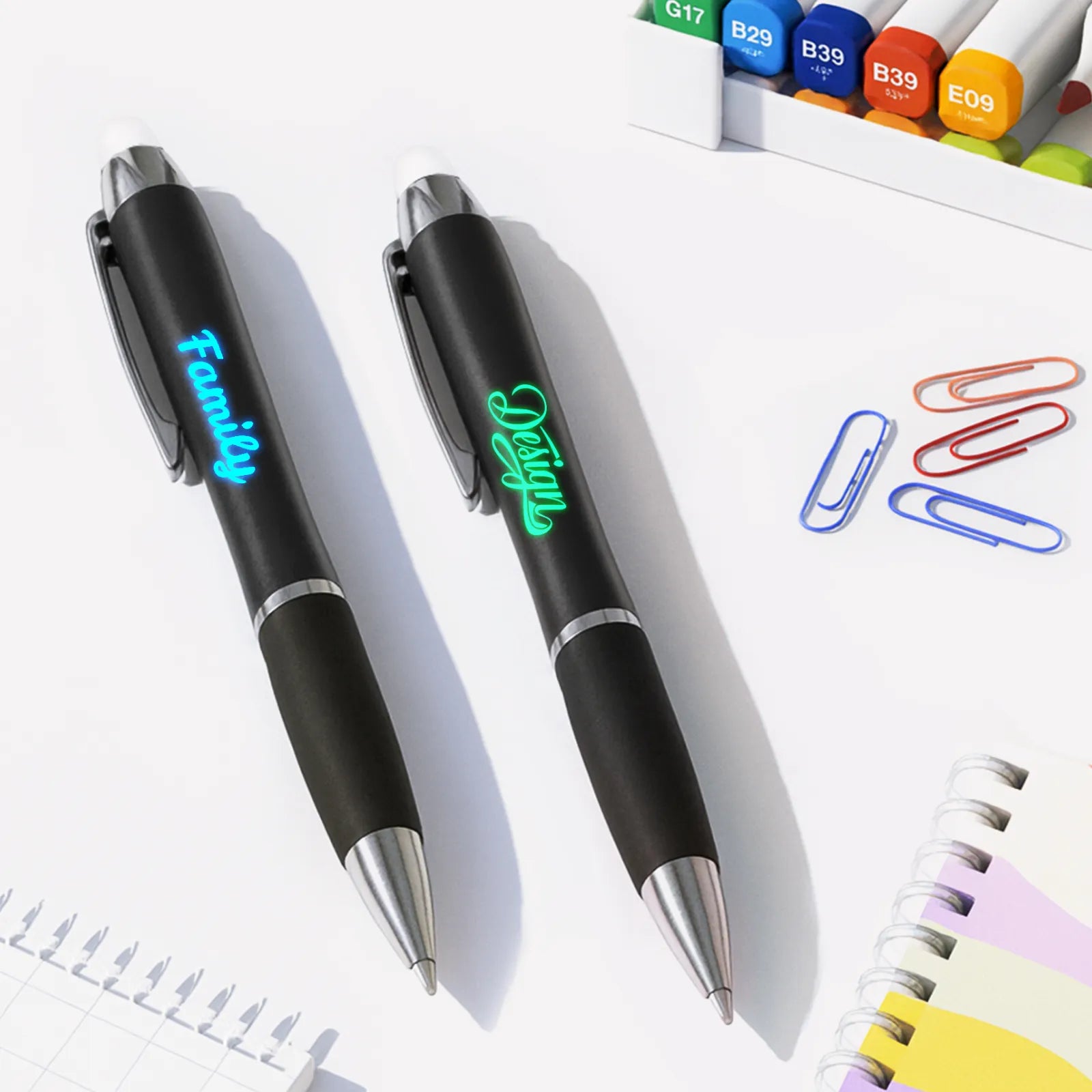 - Ce stylo à bille dispose d’un effet lumineux LED spécial et cool, avec des couleurs LED pouvant clignoter et alterner entre différentes teintes.