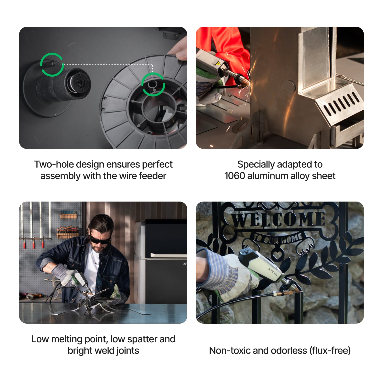 - Utilisation conviviale : Parfaitement adapté au xTool MetalFab Laser Welder et au CNC Cutter. Le design unique à double trou sur la bobine de fil de soudure permet une installation facile sur l’alimentation en fil du poste à souder xTool, assurant un alimentation automatique du fil. Une alimentation fluide du fil améliore l’efficacité du travail et l’expérience utilisateur.