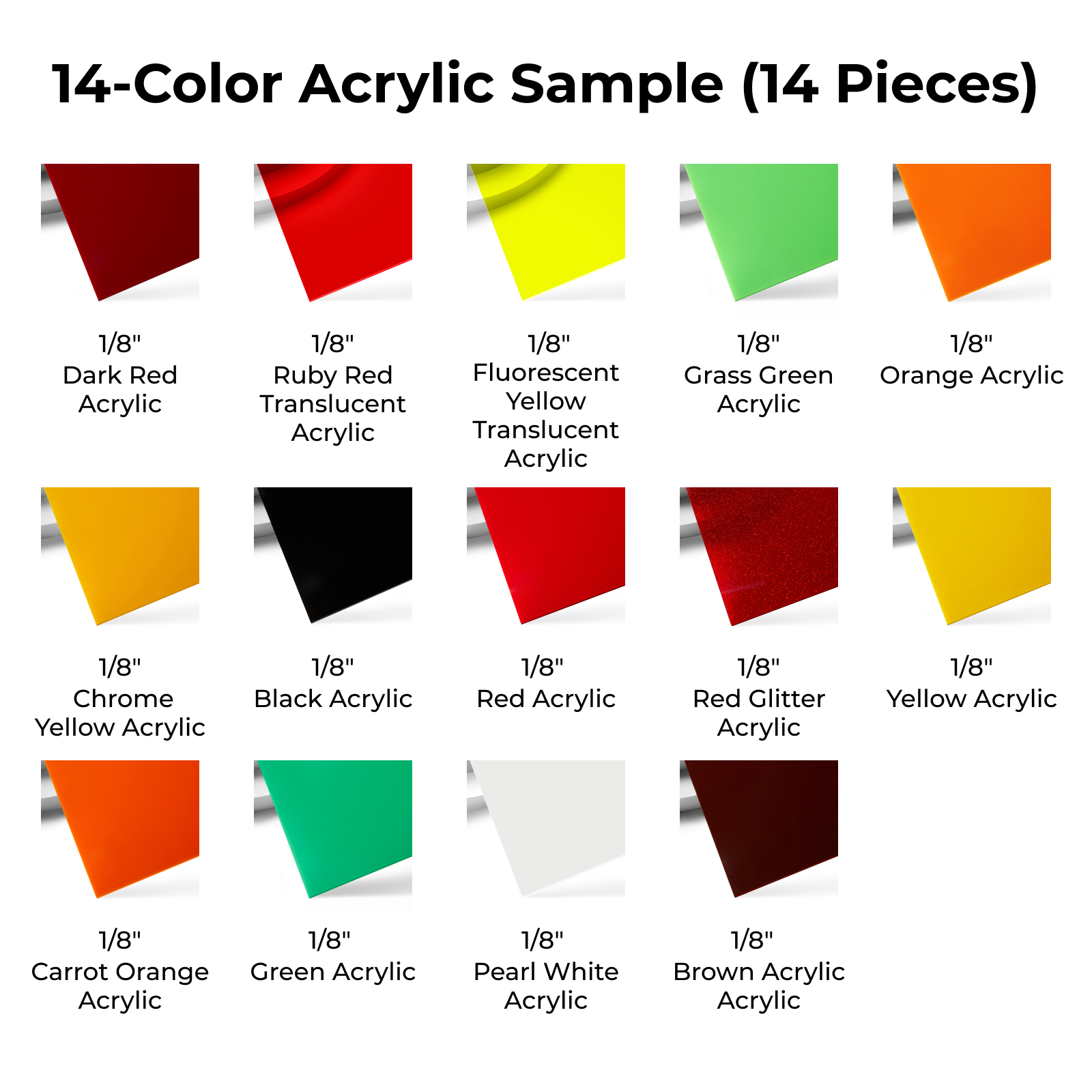 - Le jeu d’échantillons d’acrylique standard offre des couleurs saturées et une excellente finition. Les résultats de gravure et de découpe sont tous deux très esthétiques.