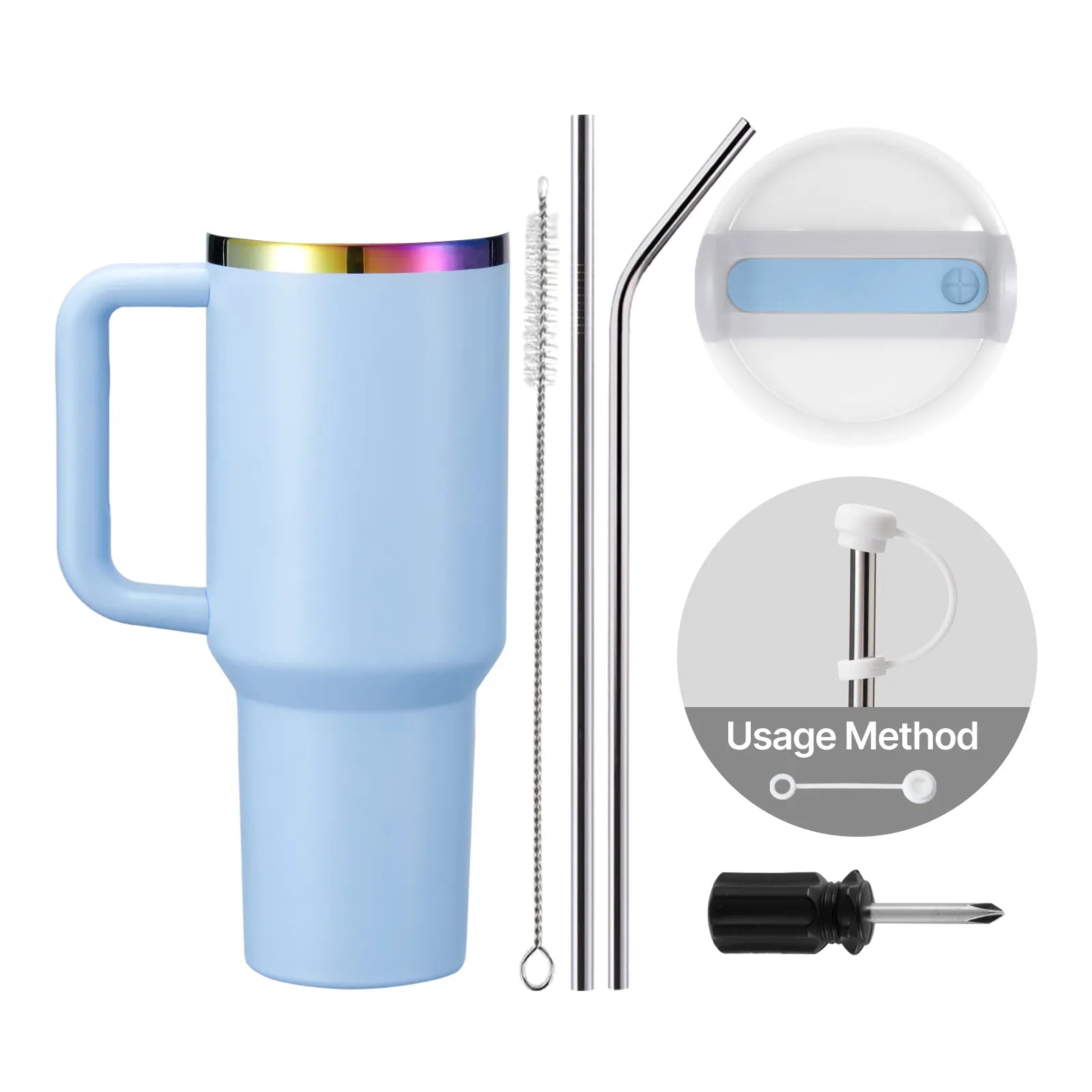 1 × Gobelet isotherme en acier inoxydable bleu pastel à lueur irisée dans le noir avec poignée amovible 【Machines compatibles - Mode de traitementGravure laser CO₂, gravure laser à lumière bleue