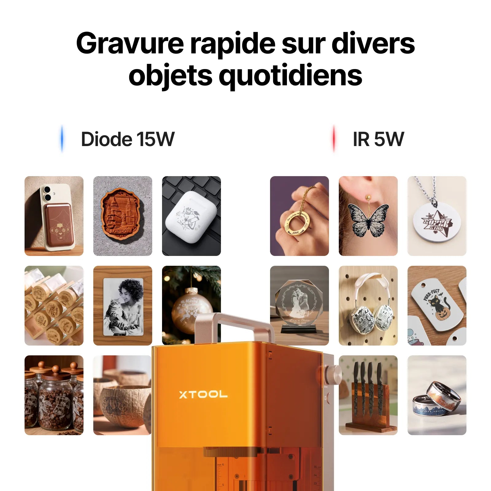 - Écosystème complet : xTool propose une gamme complète d'accessoires, des modules rotatifs aux extensions coulissantes en passant par les purificateurs d'air de bureau, afin que le F2 puisse évoluer avec vos besoins et garantir une utilisation plus sûre.