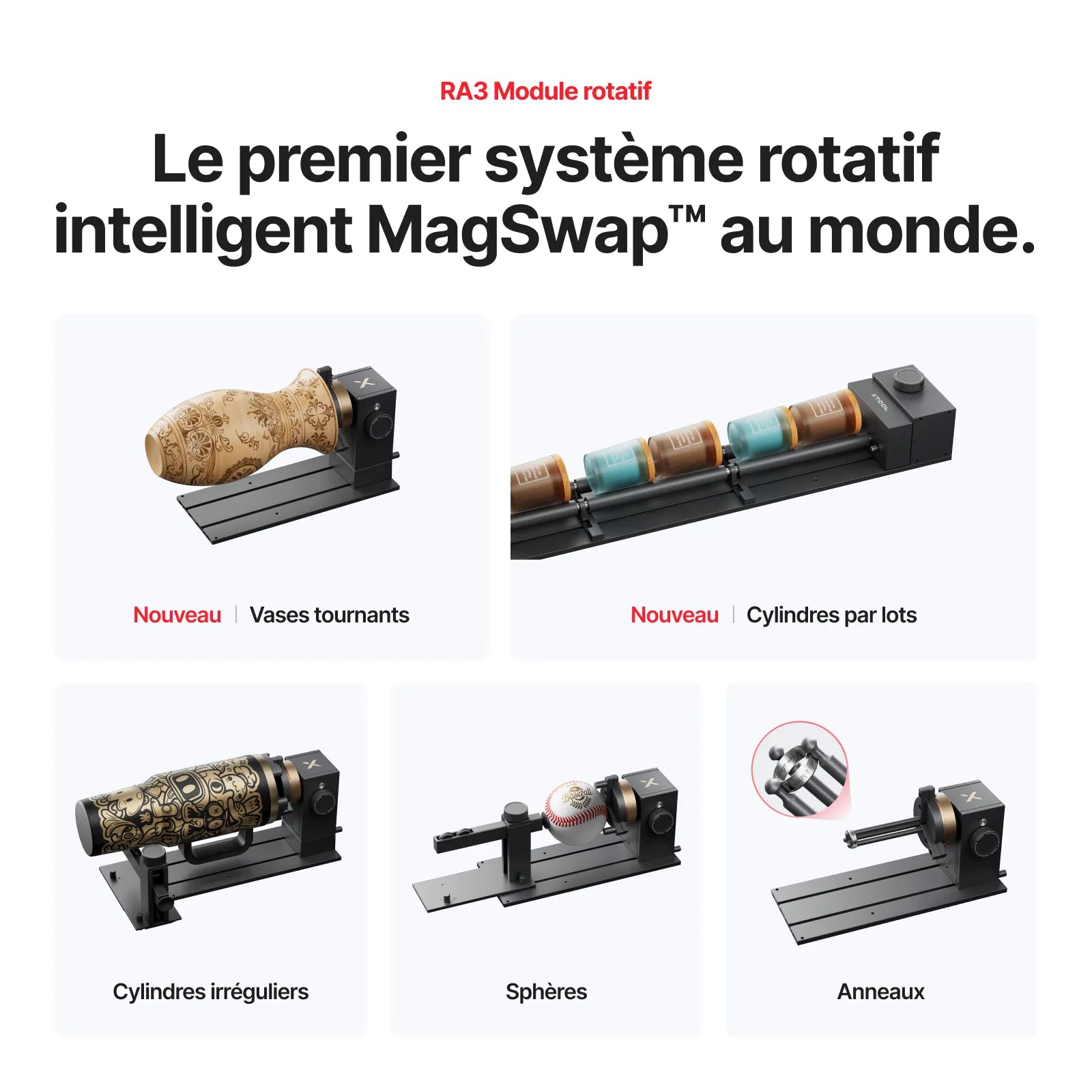 *La vitesse 2,4 fois plus rapide est basée sur une comparaison entre le RA2 Pro et le RA3 sur le xTool P2S.